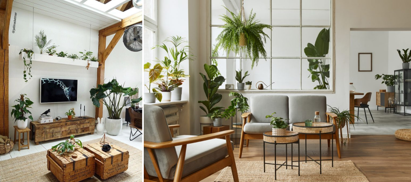 The botanical living style is inspired by nature and brings the outdoors inside. This style is all about greenery, lots of plants and natural materials. Plants are essential in a botanical interior, from small succulents to large houseplants. An abundance of greenery creates a calming and relaxing atmosphere. In addition, natural materials such as wood, wicker and rattan fit this style perfectly.