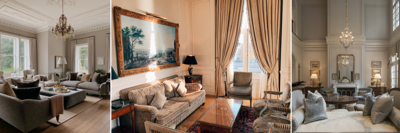De klassieke stijl kenmerkt zich doordat het elegant en symetrisch. Verder heeft het veel verfijnde details en wordt er gebruik gemaakt van rijke materialen. Denk aan antieke meubels, kroonluchters, zware gordijnen en sierlijke patronen.