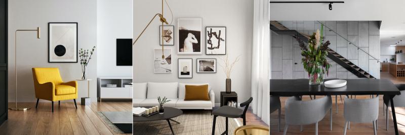 Door veel gebruik te maken van rechthoekige meubels zoals een vierkante salontafel, een rechthoekige eettafel, een hoekbank en door één muur in een andere kleur te schilderen, ontstaat er al gauw een moderne look voor jouw interieur. Een moderne woonstijl kenmerkt zich door een sober en clean design. Less is more, dus veel accessoires zijn niet nodig! Wel kun je bijvoorbeeld een opvallend designer lamp plaatsen.